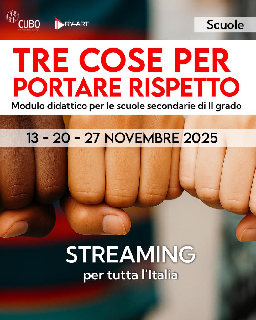 CUBO Condividere Cultura / Unipol rinnova la collaborazione con Dry-Art, con tre incontri in streaming e gratuiti rivolti alle classi secondarie di secondo grado di tutto il territorio italiano. Lo scopo è di affrontare, sotto vari punti di vista, alcuni fenomeni sociali alla base di discriminazioni e violenze. Le attività rientrano in Non ballo da sola, la rassegna itinerante di eventi in occasione della giornata internazionale per l’eliminazione della violenza contro le donne, che coinvolge le città di Bologna, Torino, Milano, Firenze e Verona.